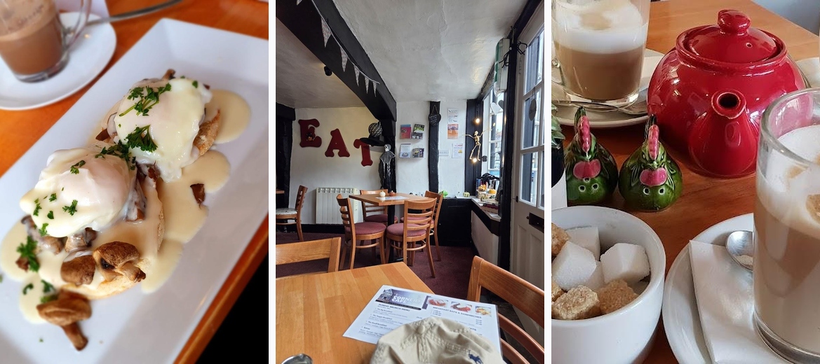 We were in Tewkesbury for a few hours one morning and decided to wander about in the town. There are lots of cafes and eateries but this one stood out to us as it was in a beautiful building and the menu had some classic British choices at reasonable prices. The cafe itself is set within a stunning historic building with a great layout that makes the most of the characterful features. The ladies running the place were exceptionally friendly and attentive. We had a nice window seat on the first floor, which was not too busy so we could enjoy some quiet. The menu has a great selection, but I was drawn to the Bubble and Squeak, which you rarely see available these days. I'm glad I chose it because it was so tasty. I could have eaten it all over again when I'd finished! My partner went for the staple English breakfast, which was a very generous portion and good quality ingredients. The coffees were also very tasty, and once we'd finished we paid the bill. The meal was excellent value for money and if we were in Tewkesbury again we wouldn't hesitate to come back.